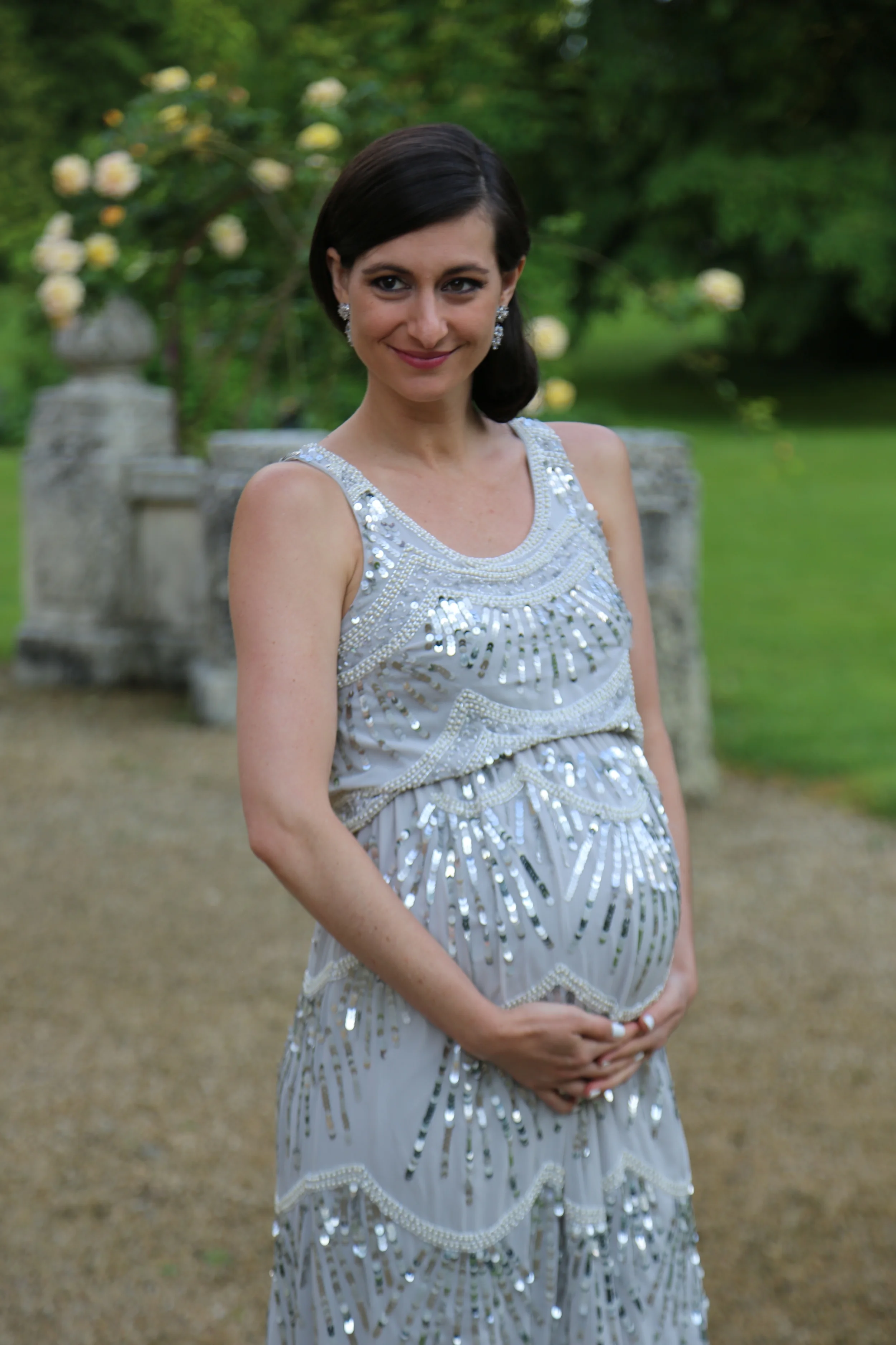 I felt like such a princess in this gown! When we found out we were going to France for our friends' wedding and that it was black tie - I wasn't sure what to wear, but I knew I wanted it to be special. I wanted something my daughter could look back at years down the road and say, "That's when my mom was pregnant with me. My first time in France!" I don't think I've ever worn this color before but when I saw it online, I just fell in love. The sequin and pearl Art Deco design made me feel like I was in a Gatsby dress. And I thought the quality looked so much more expensive than it actually was. I'm not sure that I'll ever have a chance to wear it again but I'm holding onto this one. And would be happy to let any of my pregnant friends borrow it! I was pretty proud of myself being 31.5 weeks pregnant here (in France! and flew back hours before my cut off date to fly at 32 weeks) but also because I danced until 2am (in heels!) with the rest of the crew. I didn't let the bump slow me down! :)